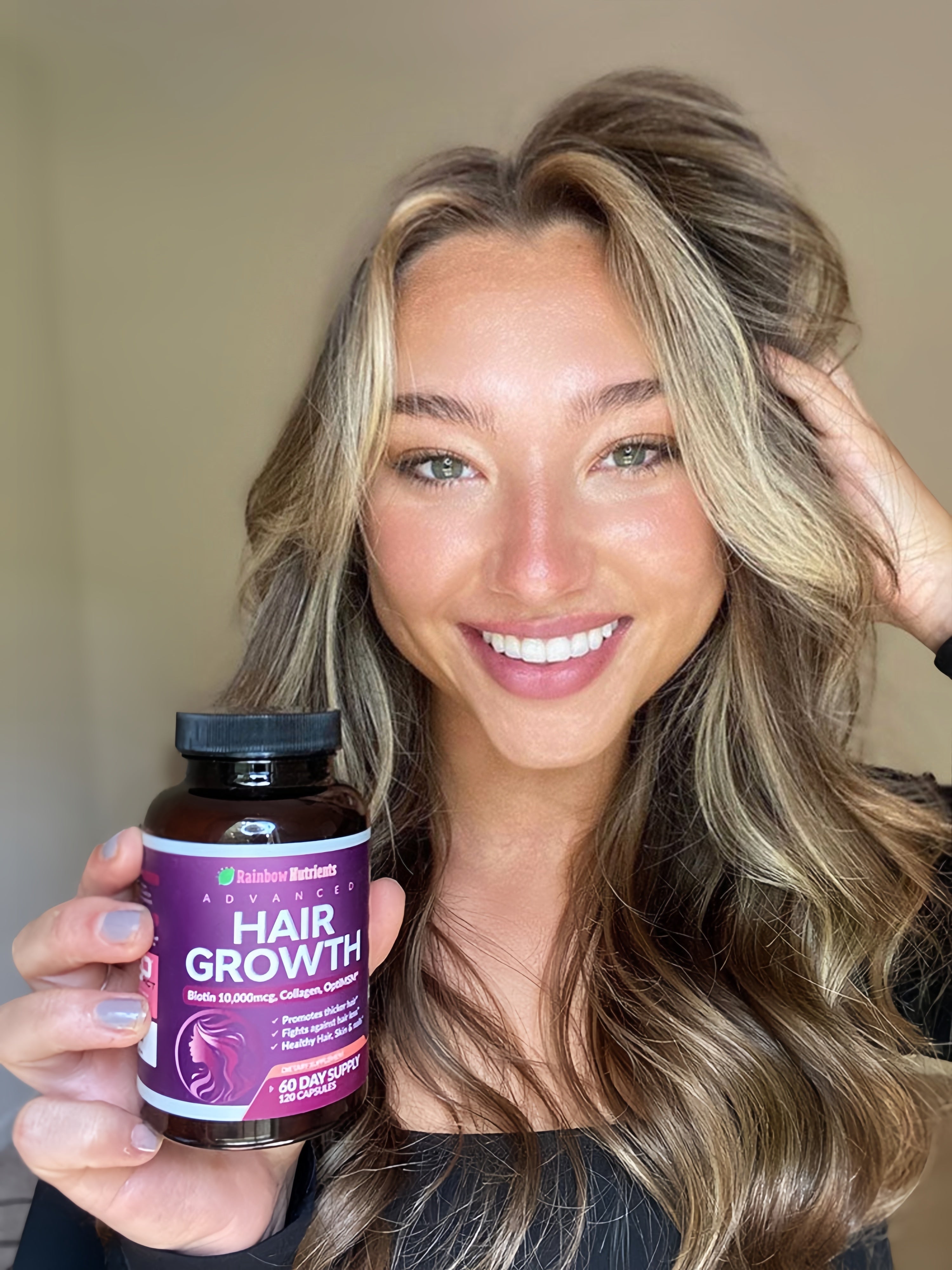 Our Advanced Hair Growth formula maintains your natural beauty from the inside. Many nutrients cannot be delivered to the body externally. This formula is designed to help support collagen - a major component of skin, nails and hair - that can decrease as we age. Contains Collagen, Biotin, & complete B-Vitamin complex.